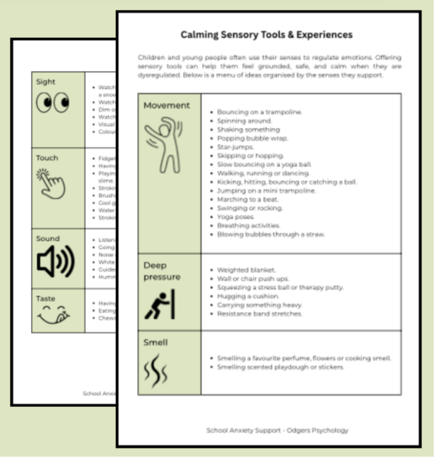 Inside the free download, you’ll get quick, easy sensory strategies organised by:
